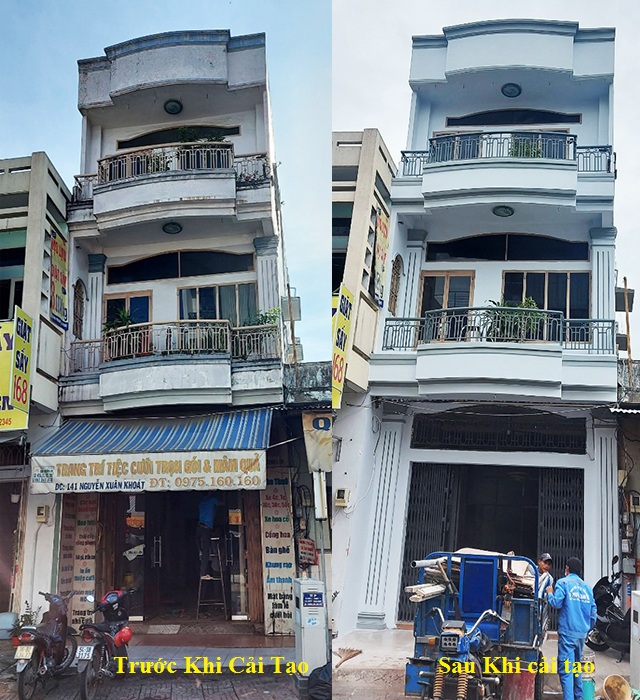 • Làm mới mặt tiền: Sơn lại, ốp đá, hoặc thay đổi thiết kế ban công, cửa chính.